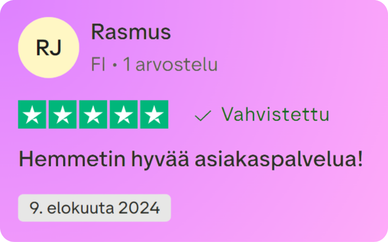 Ystävällinen ja nopea asiakaspalvelu, sekä nopeat toimitukset tekevät tilaamisesta helppoa ja vaivatonta.